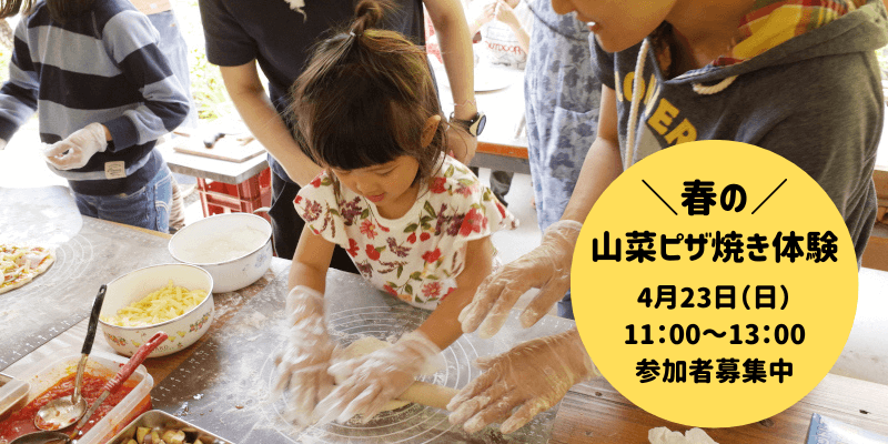 地元で採れた山菜をまあるく広げたピザ生地にトッピング♪
