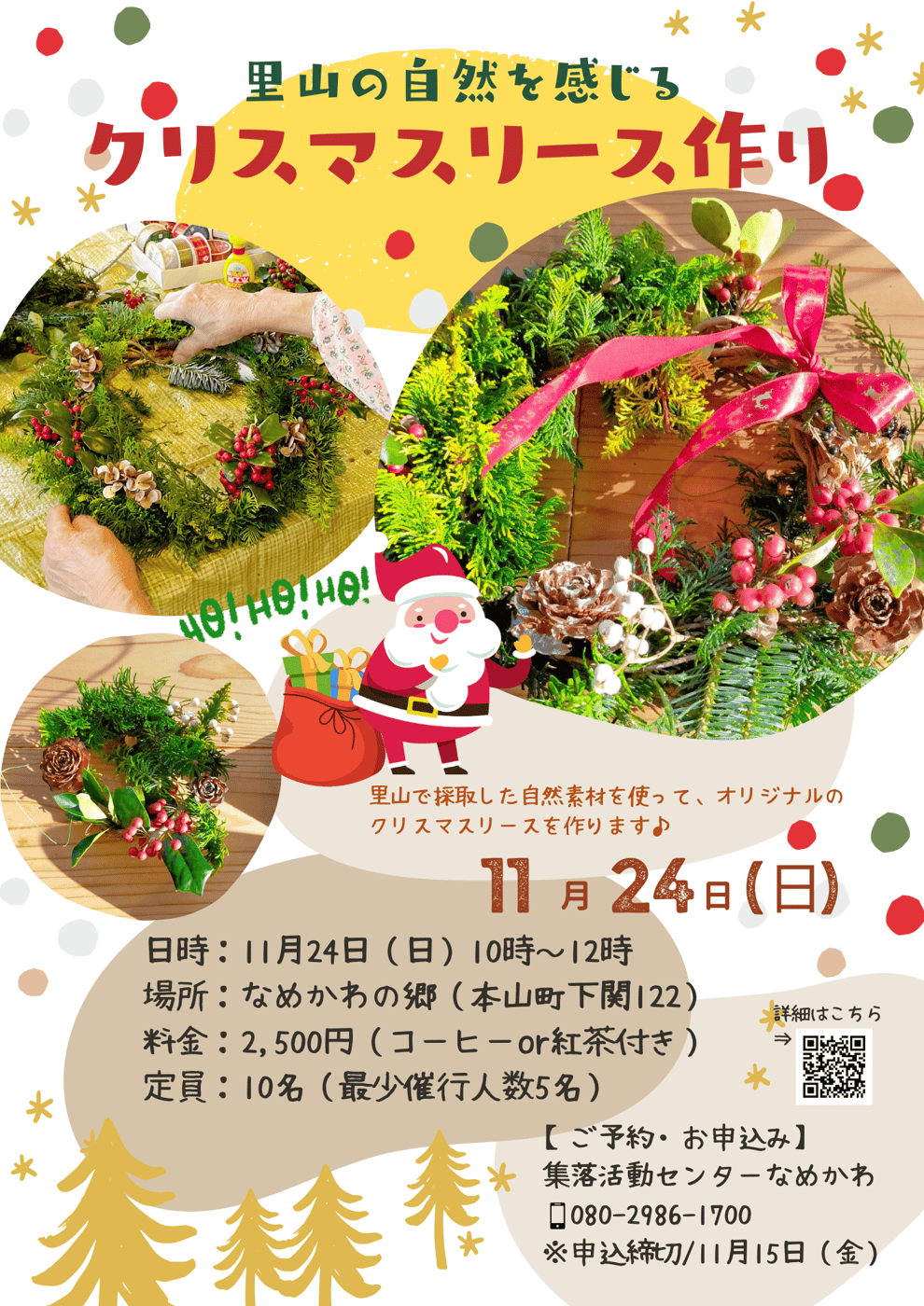 それら里山にある素材を使って、オリジナルのクリスマスリースを作りましょう😊 ✨