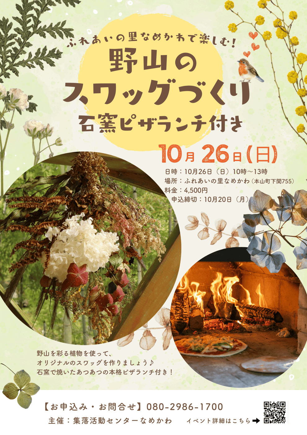 野山を彩る植物を使って、オリジナルのスワッグを作りましょう😊 ✨