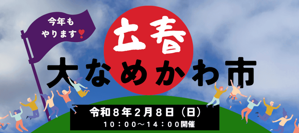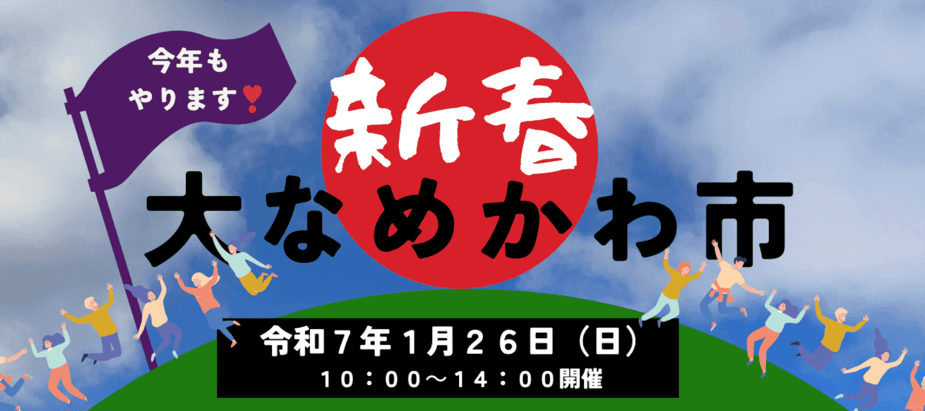 今年も「新春・大なめかわ市」やります❣ お買い物を楽しむもよし、苔テラリウム作りを楽しむもよし、昨年大人気だったあつあつの芋天をほおばるもよし! 地元のお母さんたちがつくるお赤飯やお惣菜なども並びます😋 イートインもあるので、その場で食べることもOK!...