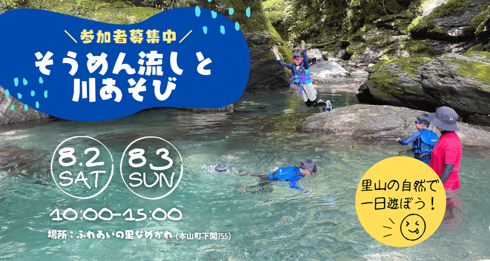 子どもも大人もわいわい楽しめるイベントです! 竹林から切り出した竹を切って、夏の夕涼みにぴったりな「竹の器」をつくります❣ オリジナルの竹の器をつくったあとは、本格的な「そうめん流し」をお楽しみください😋 そうめん以外にも夏野菜などいろんなものが流れてくるかも!? 場所は「ふれあいの里なめかわ」。...