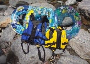 ふれあいの里なめかわでは、子どもたちが安全に川遊びを楽しめるように、子ども用ライフジャケット、浮き輪の無料貸し出しを行っております。