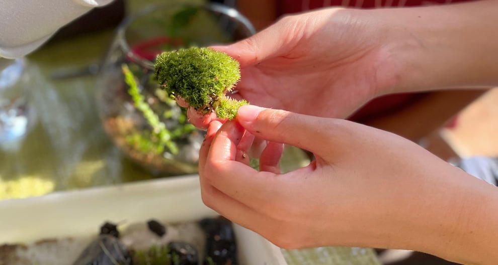 様々な種類の苔が生息する様子を観察したり、緑の中で深く深呼吸してからつくる苔テラリウムは一味違う仕上がりかも。