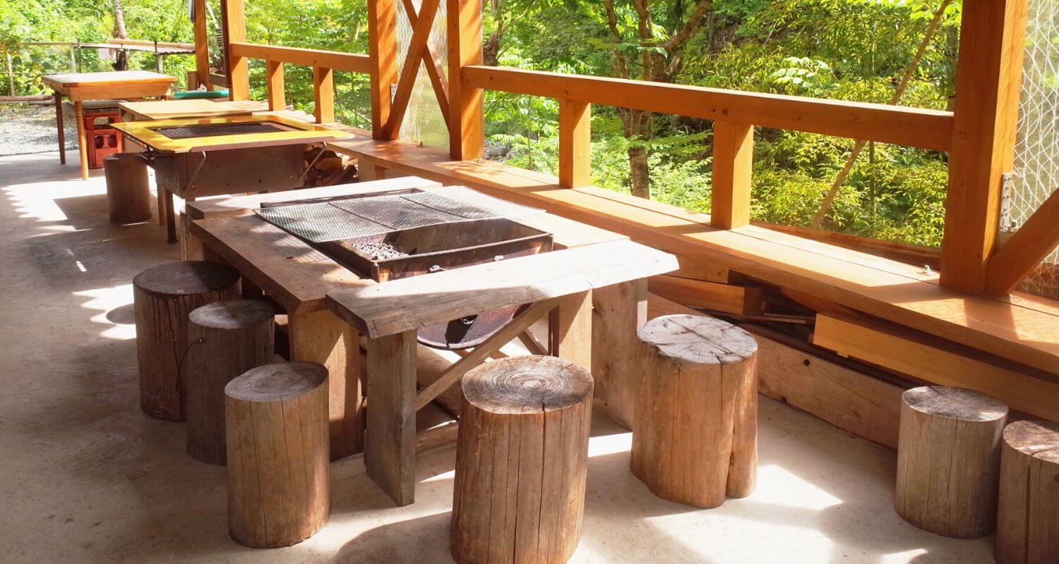 バーベキュー台(1台)、網1枚、コップ、お皿などの食器類、まな板、包丁、ボールなどの簡単な調理器具や、水道、トイレ、流し台(瞬間湯沸かし器、洗剤、スポンジ有り)、電源、冷蔵庫などの共用スペースのご利用が含まれます。